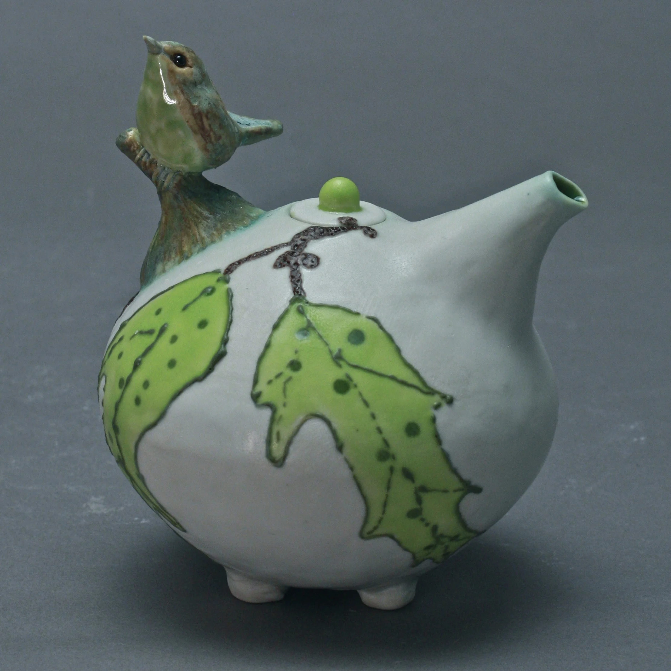 View fullsize OC-03 | Green-Leaved White Oil Cruet with Robin