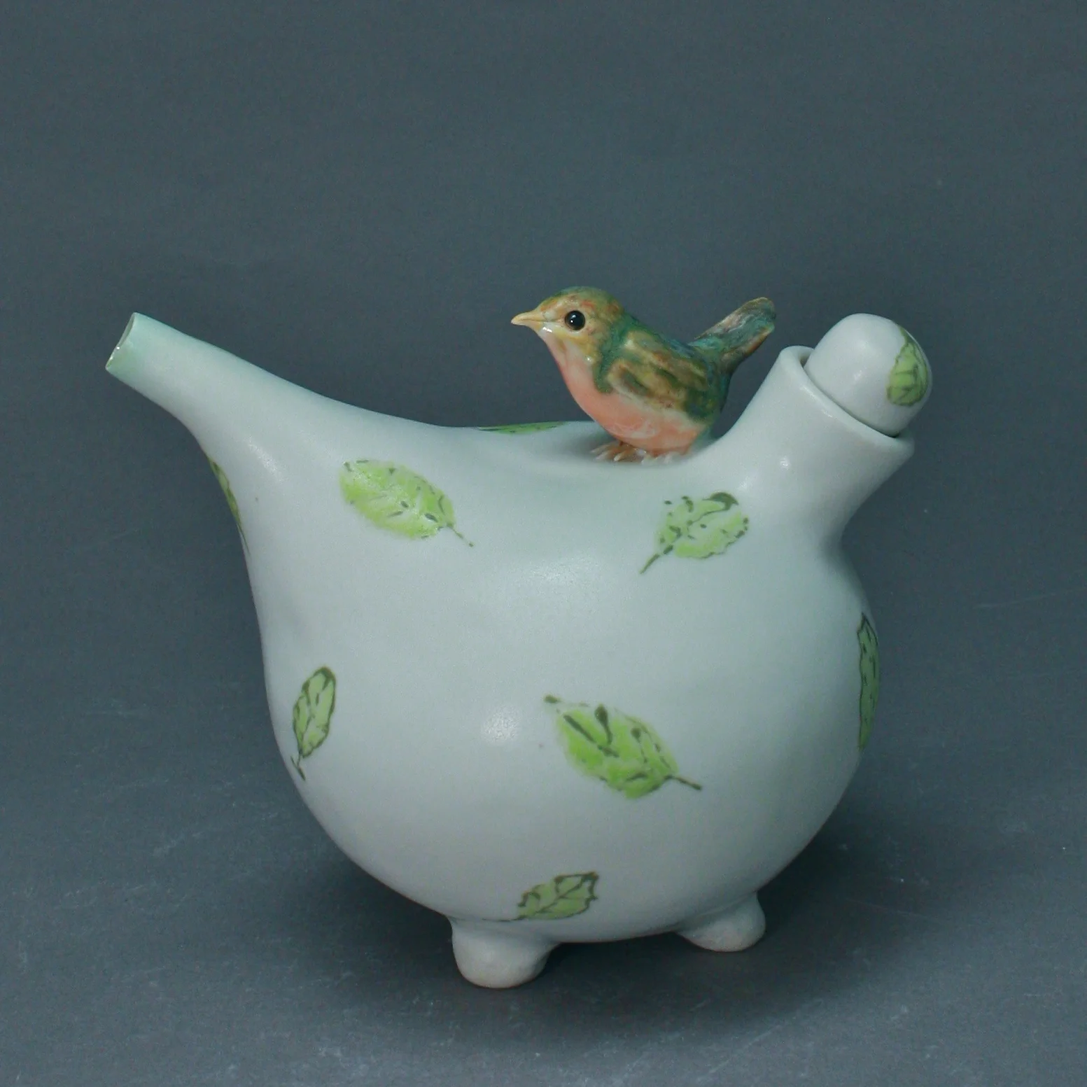 View fullsize OC-01 | Matte White Oil Cruet with Green Leaves & Flycatcher