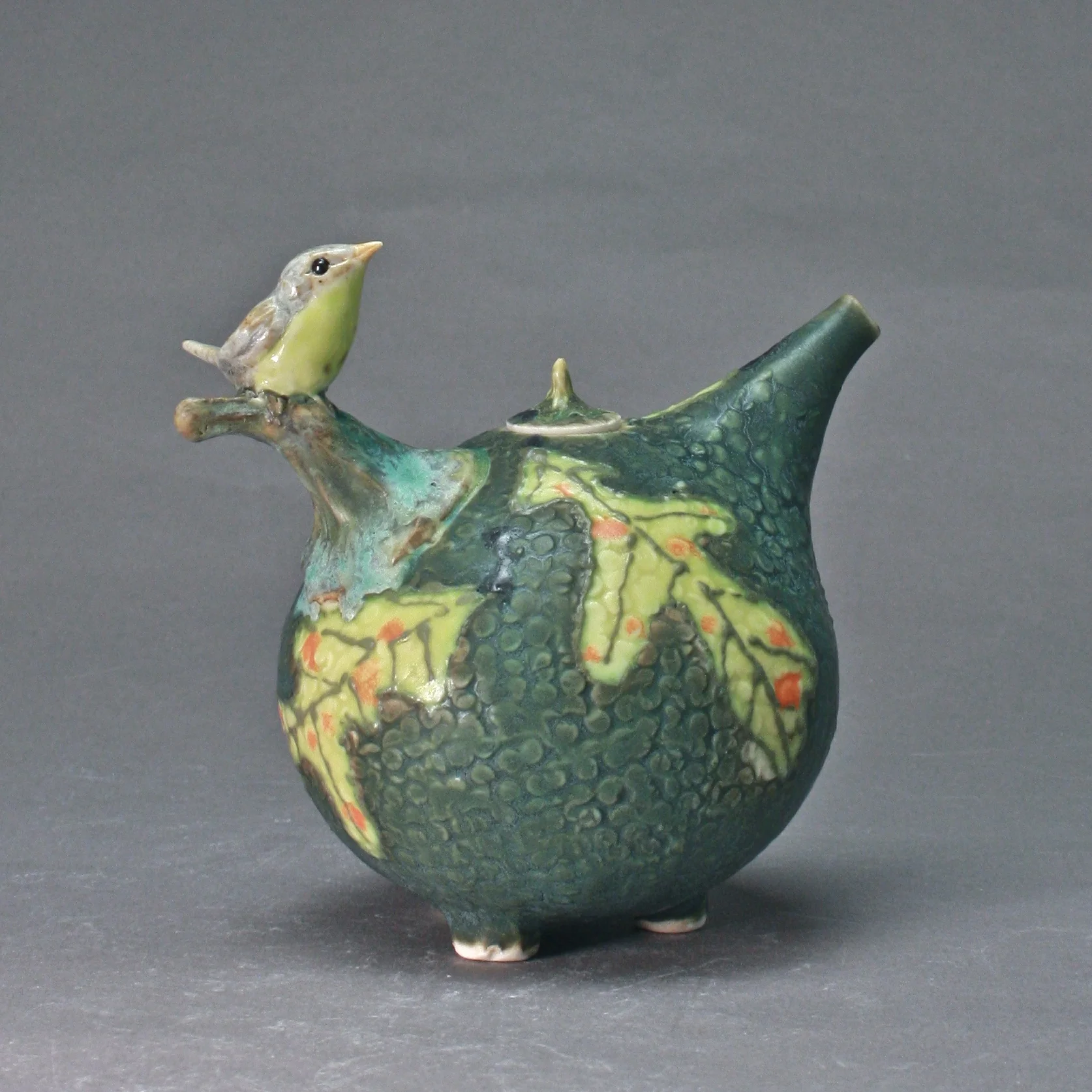 View fullsize OC-06 | Spotted Celadon Oil Cruet with Waterthrush