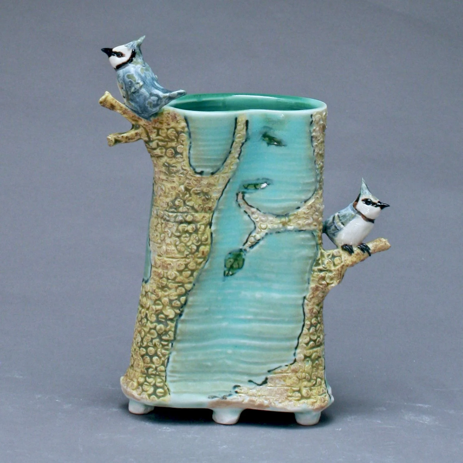 View fullsize V-08 | Tall Tree Vase with Bluejays